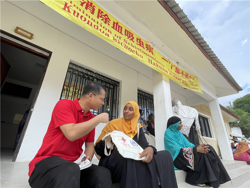 來自奔巴島查克查克區(qū)的150多名社區(qū)居民、衛(wèi)生志愿者參加活動(dòng)。醫(yī)療隊(duì)專家在現(xiàn)場(chǎng)為患者提供診療服務(wù)并發(fā)放緊缺藥品,援桑血防項(xiàng)目組則為患者講解血吸蟲等熱帶病預(yù)防知識(shí)。
