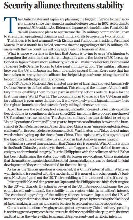 本文翻譯自《中國(guó)日?qǐng)?bào)》3月29日社論
