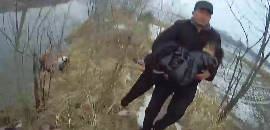 隨后趕到現(xiàn)場的民警江國棟,將落水婦女和體力透支的武慶濤拉回岸邊。