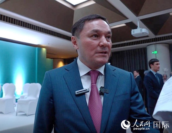 哈薩克斯坦旅游和體育部部長(zhǎng)瑪爾哲赫帕耶夫接受人民網(wǎng)采訪。人民網(wǎng) 俄布拉依攝