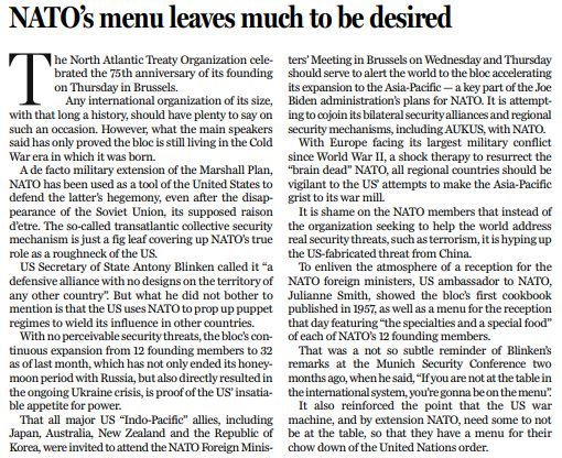 原文標(biāo)題:NATO's menu leaves much to be desired