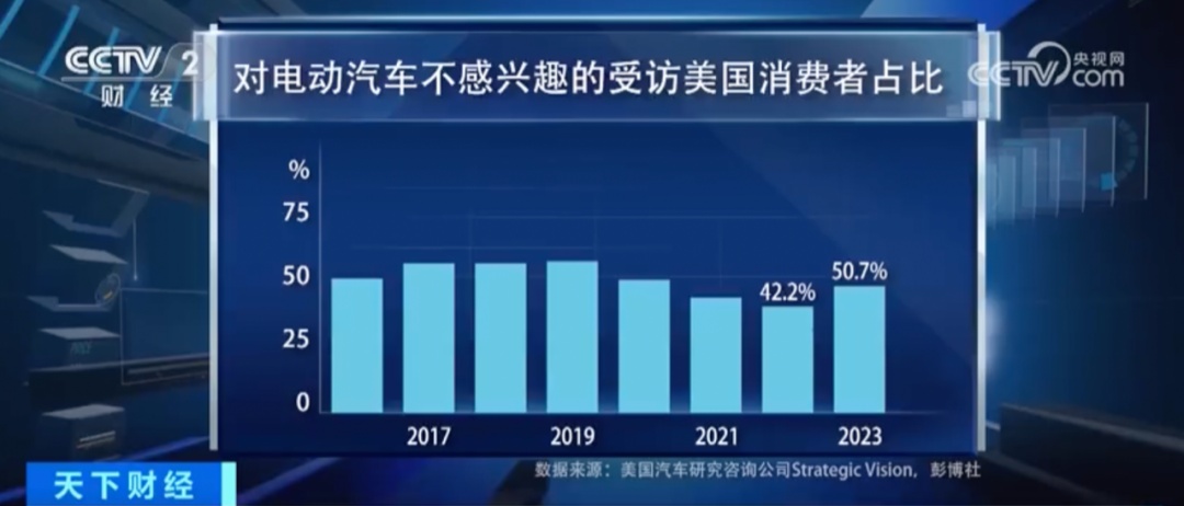 △一項(xiàng)針對(duì)25萬(wàn)美國(guó)汽車消費(fèi)者的調(diào)查顯示,2023年對(duì)于購(gòu)買和租賃電動(dòng)汽車不感興趣的消費(fèi)者占比已經(jīng)超過了一半,達(dá)到了50.7%。