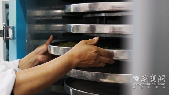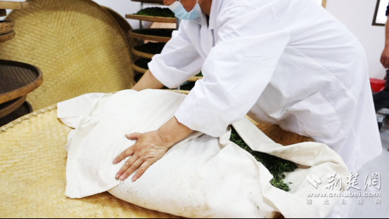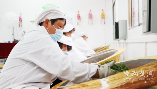 一進入湖北紅綠黃茶業(yè)有限公司的生產(chǎn)車間,清冽的茶香撲鼻而來,工人們有條不紊地炒茶、悶茶。屋外,三兩茶農(nóng)正與公司負責人交接鮮葉,一派繁忙景象。