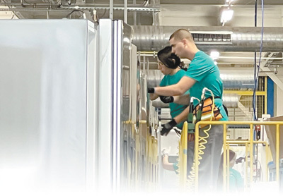 2023年9月,海信投資建設(shè)的塞爾維亞冰冷工廠竣工運(yùn)營(yíng)。圖為工人在生產(chǎn)線上忙碌。