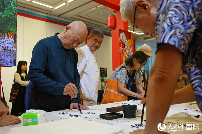 現(xiàn)場(chǎng)觀眾體驗(yàn)書(shū)法藝術(shù)。人民網(wǎng)記者 白元琪攝