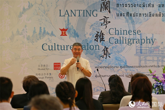 曼谷文化中心書(shū)法教師劉崇明演講。人民網(wǎng)記者 白元琪攝