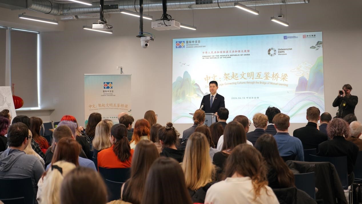 人民網(wǎng)華沙4月20日電 (記者禹麗敏)4月19日,中國駐波蘭大使館同華沙社會人文大學聯(lián)合舉辦2024年“國際中文日”活動,中國駐波蘭大使孫霖江、華沙社會人文大學副校長格魯什琴斯卡及師生等近300人出席。