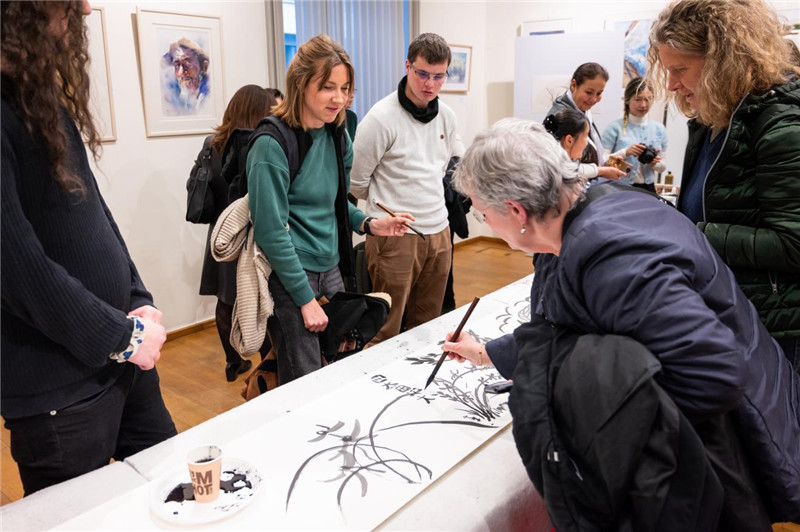 人民網(wǎng)布魯塞爾4月23日電 (記者牛瑞飛)正值“聯(lián)合國中文日”之際,“蘭亭·雅集”中國書法主題活動(dòng)19日在布魯塞爾中國文化中心舉行。來自歐盟委員會(huì)教育文化總司等歐盟總部機(jī)構(gòu)的工作人員、布魯塞爾中國文化中心中文、書畫等培訓(xùn)班學(xué)員、比利時(shí)當(dāng)?shù)毓娂坝押萌耸?0余人參加。主題活動(dòng)通過講座、互動(dòng)體驗(yàn)等形式,讓大家一同感受中國書法和中國文字的魅力,了解中國文化。