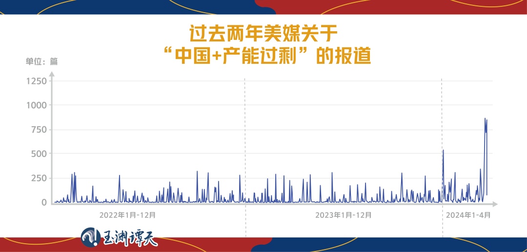 檢索美媒同時提及“中國”“產(chǎn)能過?!钡膱蟮?,從數(shù)量變化中,可以看出,所謂中國“產(chǎn)能過?!钡脑掝},從2022年就已經(jīng)開始。