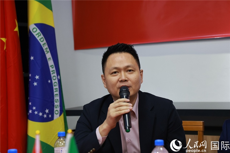 中國駐里約熱內盧總領館副總領事王尉育在座談會上致辭。人民網(wǎng)記者 陳海琪攝
