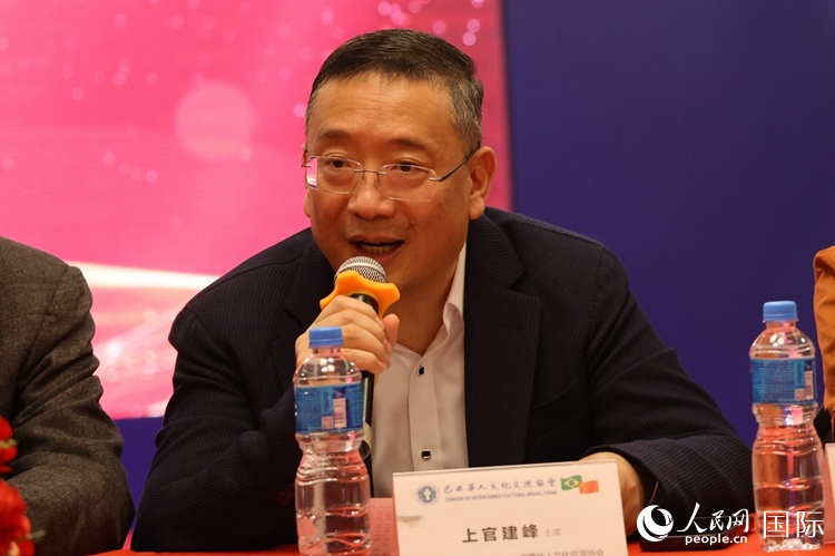 巴西文協(xié)主席上官建峰在座談會(huì)上致辭。人民網(wǎng)記者 陳海琪攝