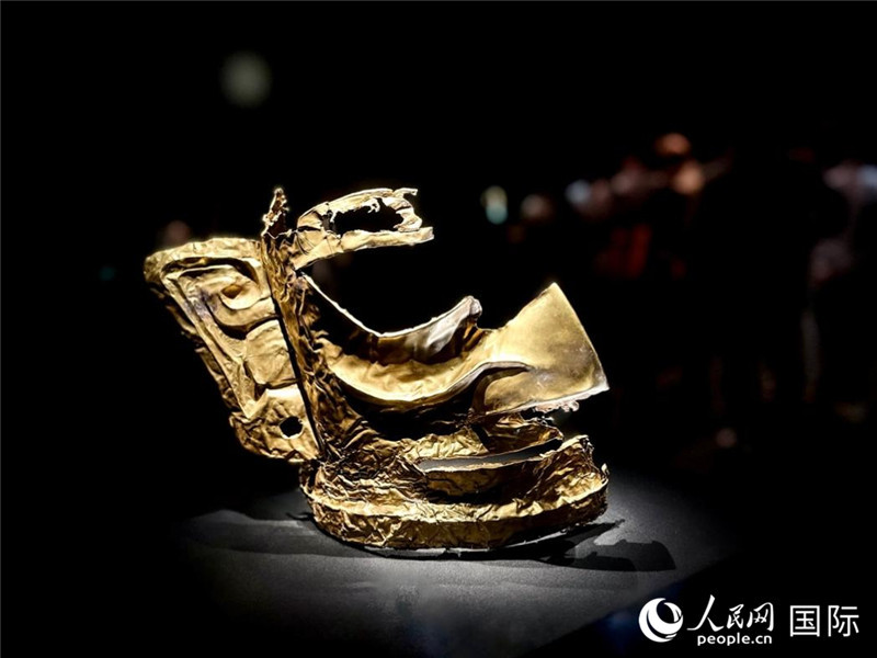 三星堆博物館展出的金面具。人民網(wǎng)記者 羨江楠攝