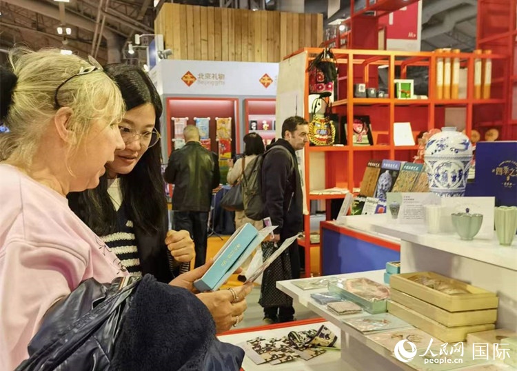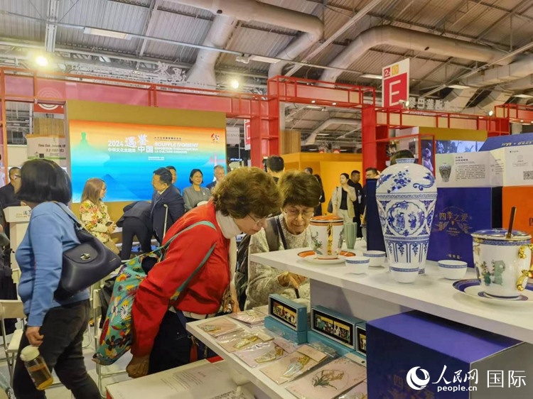 巴黎市民在“倍悅文創(chuàng)”展臺前。人民網記者 于超凡攝