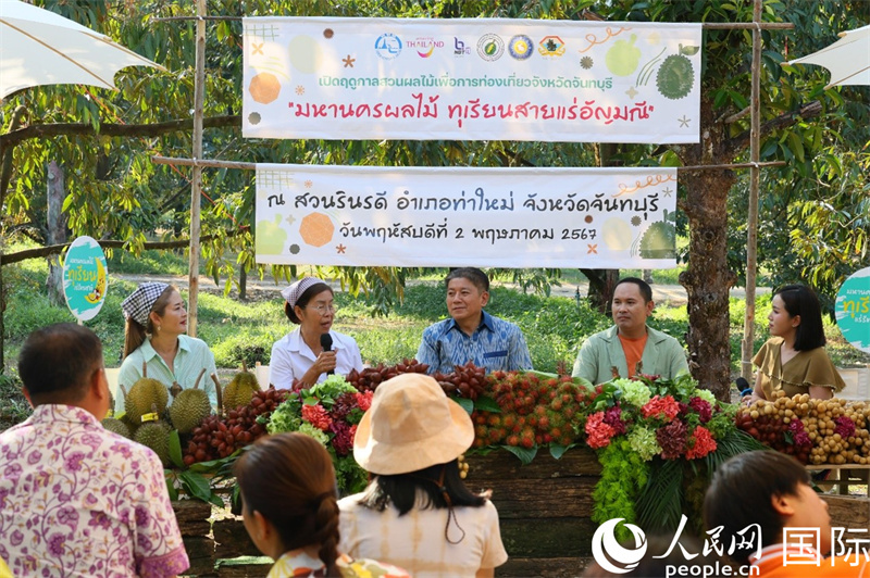 莫斯特在致辭中表示,尖竹汶府是泰國著名的水果之鄉(xiāng),擁有豐富的水果資源和獨特的水果文化。舉辦旅游水果節(jié),不僅可以宣傳尖竹汶府的水果,還可以促進(jìn)當(dāng)?shù)芈糜螛I(yè)發(fā)展,助力鄉(xiāng)村振興。“尖竹汶府的水果擁有著嚴(yán)格的質(zhì)量管控體系,從種植到采摘,每一個環(huán)節(jié)都經(jīng)過精心管理,確保果品的鮮度和品質(zhì)。因此,尖竹汶府的水果深受國內(nèi)外消費者的喜愛,遠(yuǎn)銷海內(nèi)外。”