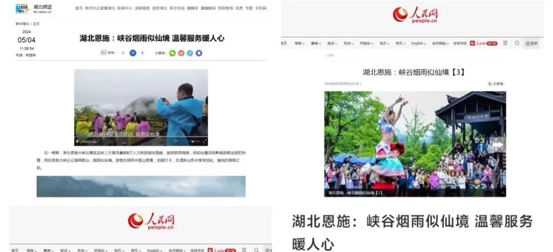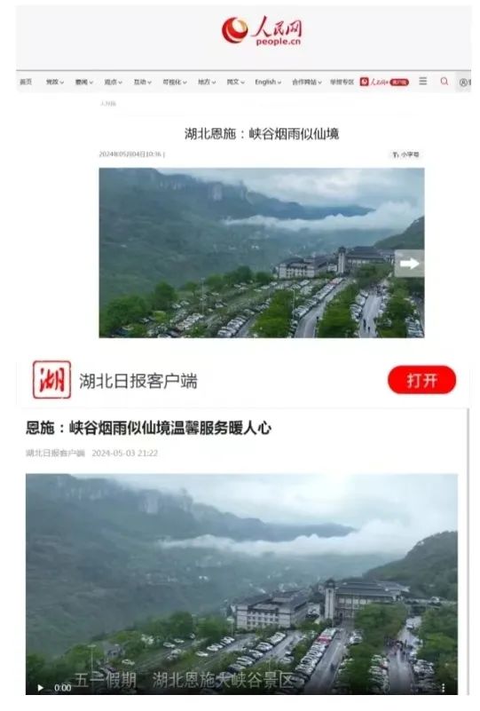 大峽谷景區(qū)受到央視新聞、新華網(wǎng)、人民網(wǎng)、長江云等主流媒體的熱點關(guān)注,聚焦報道《峽谷煙雨似仙境 溫馨服務(wù)暖人心》等暖人事件;抖音達(dá)人“一帶一”免費游景區(qū)活動備受好評,#知音湖北 遇見恩施大峽谷抖音話題挑戰(zhàn)賽游客熱情參與,抖音直播首次躋身全國景點排行榜前十。