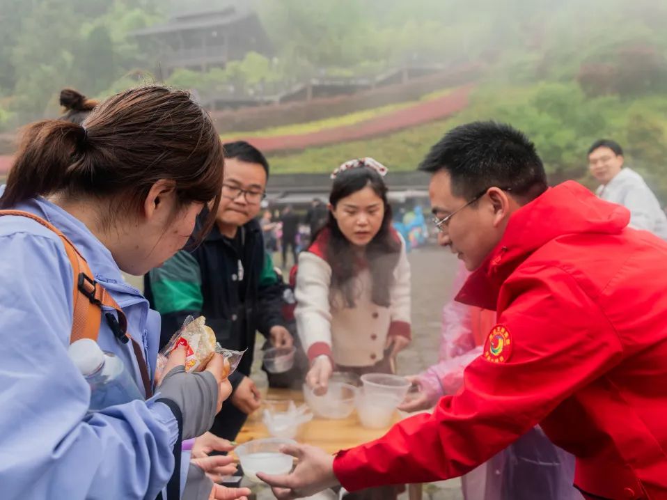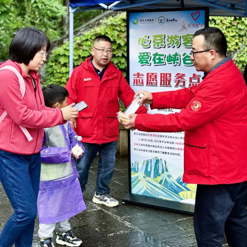 想您所想,盡我所能。大峽谷景區(qū)60多名志愿者以流動服務(wù)的方式將貼心服務(wù)送到游客身邊。分別在游客中心、小蠻腰垂梯出口、甘堰塘返程中心設(shè)立能量“補給站”,免費發(fā)放礦泉水、面包、雨衣。走累了,300臺按摩椅免費休息、放松;最特別之處放置吹風(fēng)機、暖風(fēng)機,時而的濛濛細(xì)雨讓淋雨的游客及時烘烤濕衣、吹干頭發(fā);在海拔相對高的區(qū)域,現(xiàn)場熬制熱氣騰騰的稀飯、沖泡特色玉露茶,在旅途中,既暖心又暖胃。