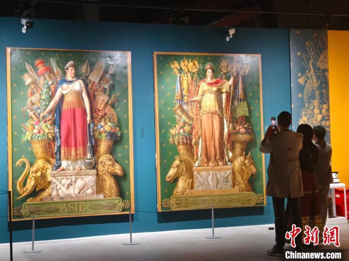 4月13日,觀眾拍攝掛毯模板,左圖為“亞細(xì)亞”,右圖為“歐羅巴”?!√K婧欣 攝