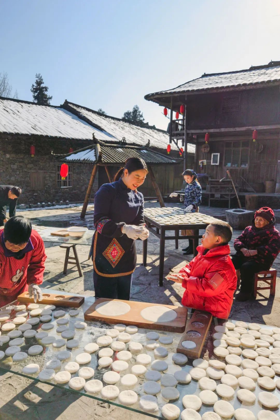 湖北恩施南河村楸木園的老院子里,民間美食傳承人謝海艷手工制作糍粑迎新年。