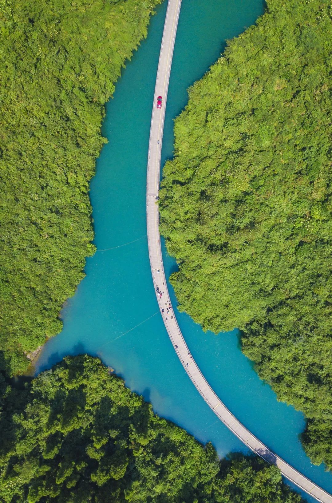 騰龍洞中起飛的熱氣球。 攝影/DoctorLuo,圖/圖蟲·創(chuàng)意獅子關(guān)最美水上公路,讓恩施州成了網(wǎng)紅打卡圣地。這段被稱為“廊橋遺夢”的水上浮橋,仿佛一條蜿蜒的玉帶垂于平靜的水面。走在這條路上,讓人仿佛置身于世外桃源,一股“緣溪行,忘路之遠(yuǎn)近”的感覺油然而生。