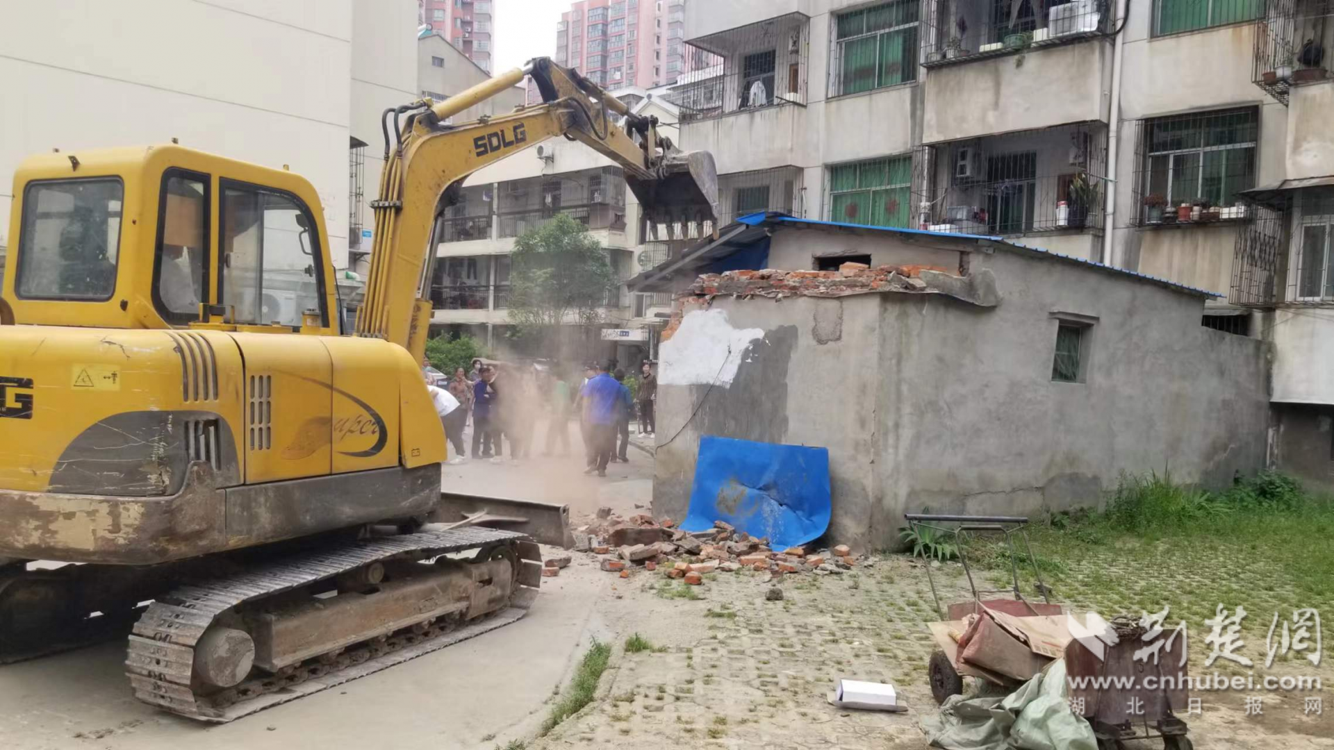 荊楚網(wǎng)(湖北日報(bào)網(wǎng))訊 (通訊員 李明埜 黃星 陳建軍)“終于拆了,小區(qū)通道直接一把打通了!”小區(qū)王大爺高興的拍手叫好。5月10日,在孝感市云夢縣工藝小區(qū)居民樓前,一臺挖掘機(jī)正在拆除違建物,一面圍墻在數(shù)位居民的見證下轟然倒塌,大家一邊看一邊議論著。