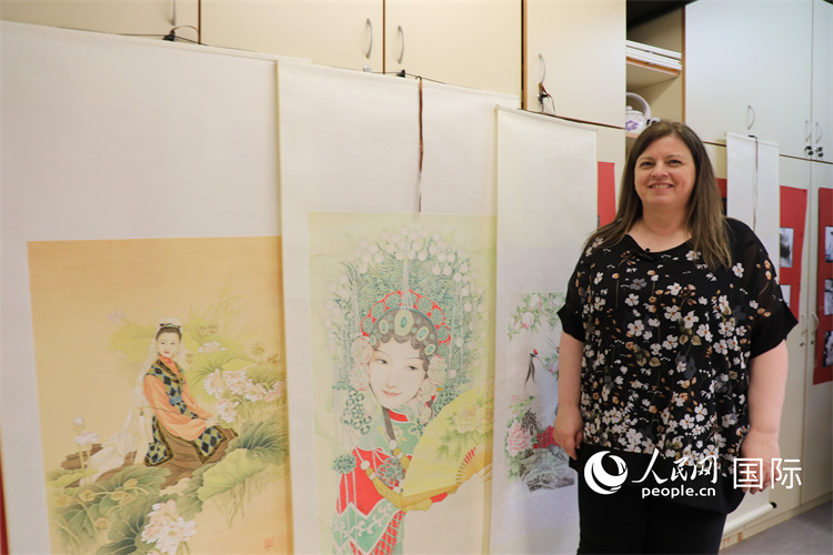 圖為哈伊納爾卡向記者展示她的中國(guó)畫作品。人民網(wǎng)記者 沈小曉攝