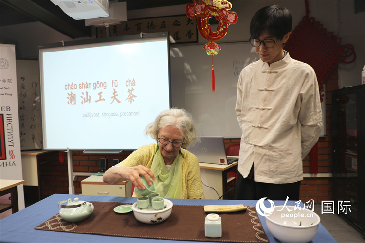 圖為諾維薩德大學(xué)孔子學(xué)院茶文化課堂。人民網(wǎng)記者 沈小曉攝