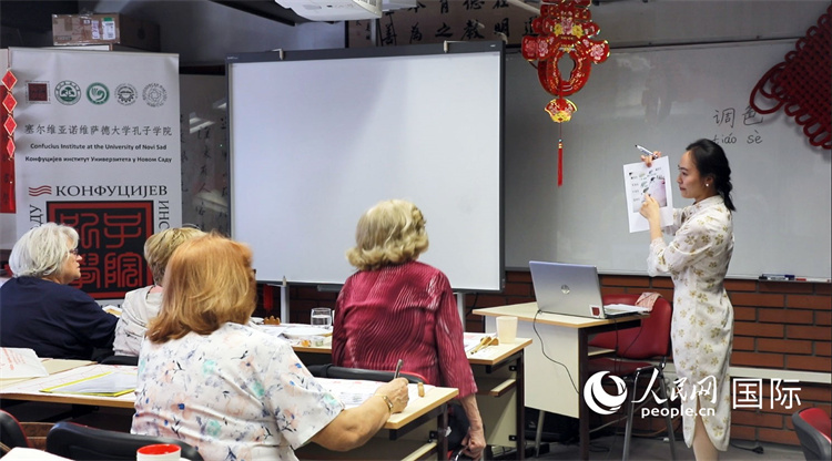 圖為諾維薩德大學(xué)孔子學(xué)院中國(guó)畫課堂。人民網(wǎng)記者 沈小曉攝