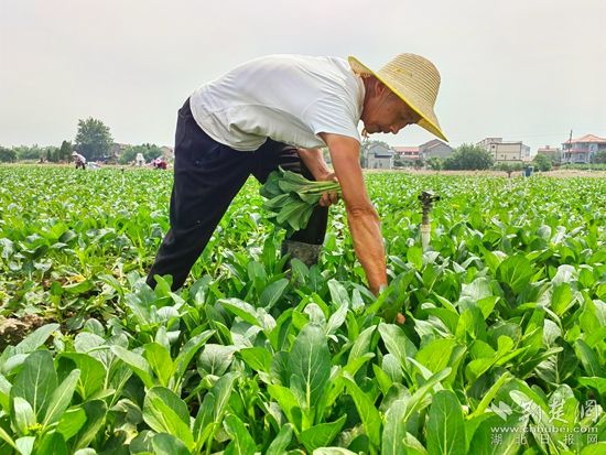 在黃梅縣分路鎮(zhèn)鼎旺農(nóng)業(yè)農(nóng)民專業(yè)合作社廣東菜心種植基地,近100名割菜工手戴指甲刀,在技術(shù)顧問呂美標(biāo)的指揮下,分散到各個地塊,不一會兒,路兩旁就整齊堆滿了菜心,合作社社長石成旺拿出手機(jī)聯(lián)系車輛,經(jīng)過整理、清洗,剛收割的菜心就被送到凍庫,準(zhǔn)備第二天運(yùn)往國內(nèi)外。