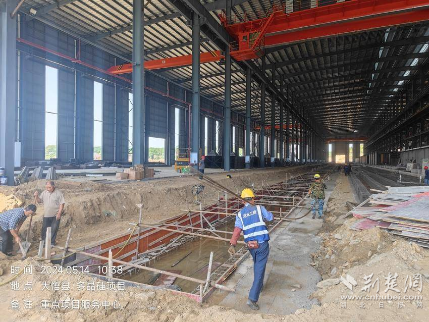 5月14日,位于大悟經(jīng)濟開發(fā)區(qū)總投資1億元的中水環(huán)保新科技項目建設(shè)現(xiàn)場,8000平方米的鋼構(gòu)廠房主體已封頂,工人正在砌筑隔斷墻,辦公樓建設(shè)正在打樁。