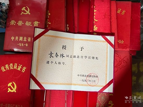 袁春林部分獎狀證書。阮瓊 攝