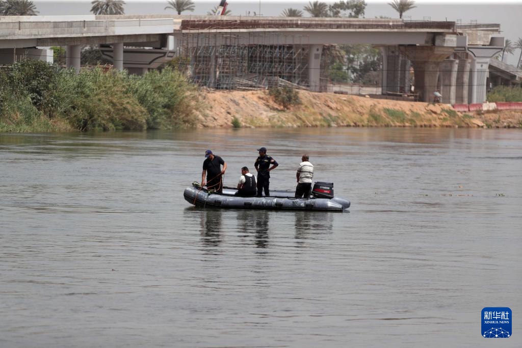 5月21日,在埃及吉薩省,救援人員在小型巴士落水事故現(xiàn)場工作。新華社發(fā)(艾哈邁德·戈馬攝)