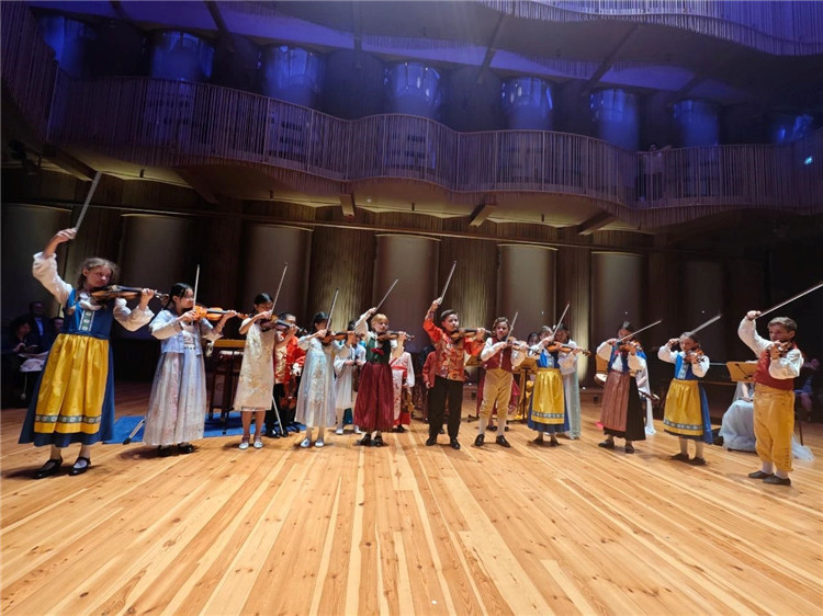 瑞典兒童同臺演出多個曲目。中國駐瑞典大使館供圖