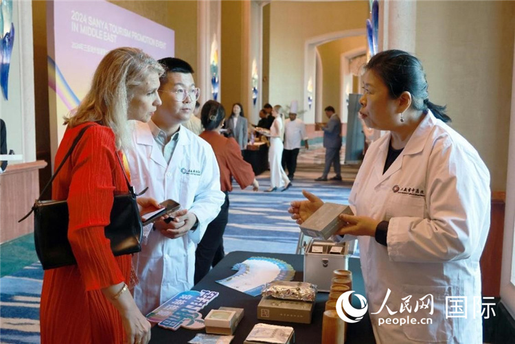 三亞市中醫(yī)院代表向來賓介紹中醫(yī)。人民網(wǎng)記者 管克江攝
