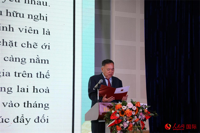 中國駐越南大使館教育參贊鄭大偉致辭。人民網(wǎng)記者 楊曄攝