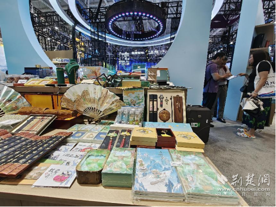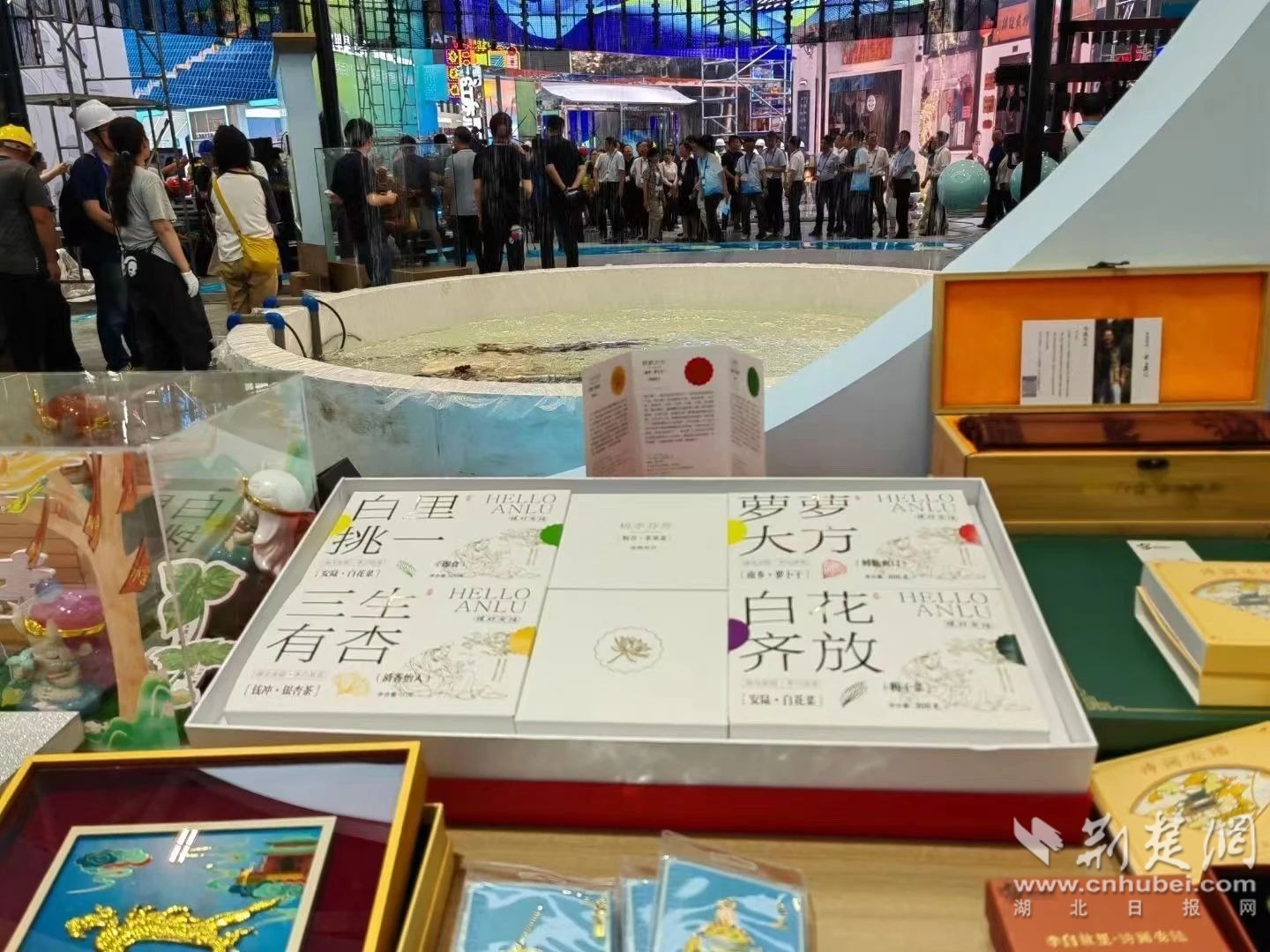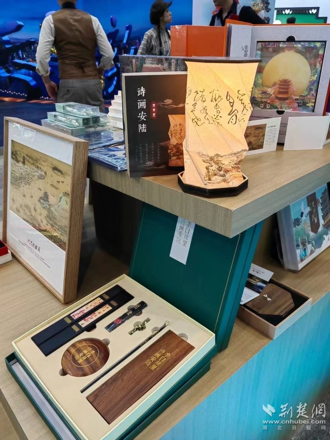 在文博會湖北展區(qū)里,來自安陸的文創(chuàng)飾品光彩奪目。李白詩詞文房套裝和銀杏書簽,華美典雅,頗為驚艷。