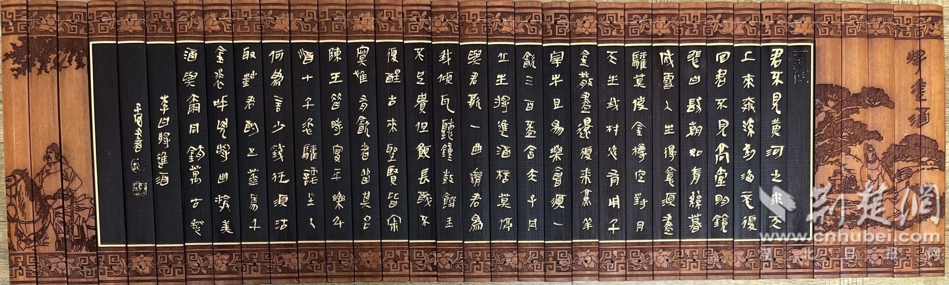 隨著中國書法家協(xié)會會員、安陸文化名家劉子安的現(xiàn)場介紹,這些“安陸元素”文創(chuàng)產(chǎn)品被現(xiàn)場群眾爭相訂購?!霸瓉砝畎讋?chuàng)作巔峰時期是在安陸度過的啊,我一定得去安陸看看。”來自上海的李先生一邊翻看刻著李白《將進酒》的秦簡竹一邊說。