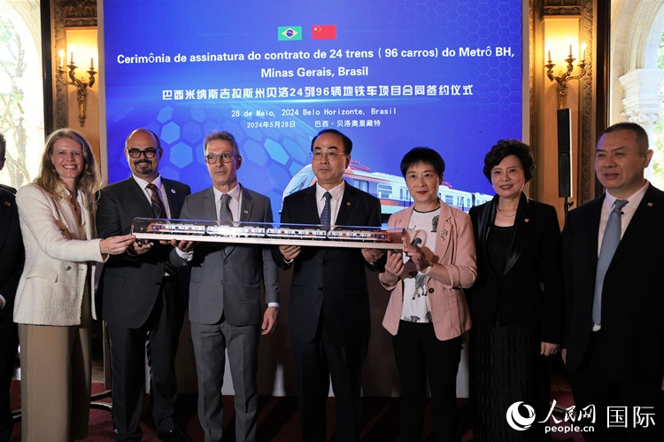 人民網(wǎng)貝洛奧里藏特5月28日電 (記者時元皓)當(dāng)?shù)貢r間5月28日下午,在巴西米納斯吉拉斯州(簡稱“米納斯州”)首府貝洛奧里藏特市(簡稱“貝洛市”)的自由宮,貝洛地鐵公司與中國中車子公司中車長客簽署采購合同,中車長客將提供24列共計96輛地鐵車輛,用于貝洛市既有地鐵線路車輛更新及未來新地鐵線路運營。簽約雙方代表,中國駐里約熱內(nèi)盧總領(lǐng)館、米納斯州政府官員代表等出席簽約儀式。