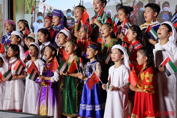 活動上,身著中阿傳統(tǒng)服飾的孩子們共唱歌曲,表達對美好未來的向往。人民網(wǎng)記者 張志文攝