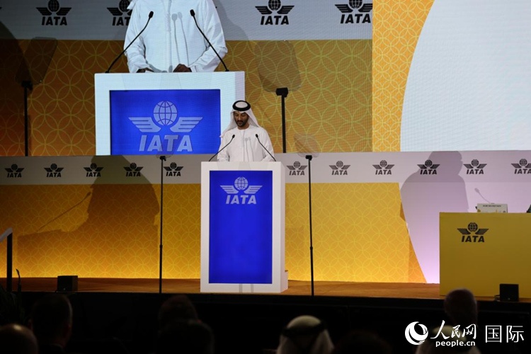 阿聯(lián)酋經濟部長瑪爾伊在第80屆國際航空運輸協(xié)會年會暨2024年世界航空運輸峰會上致辭。人民網(wǎng)記者 張志文攝