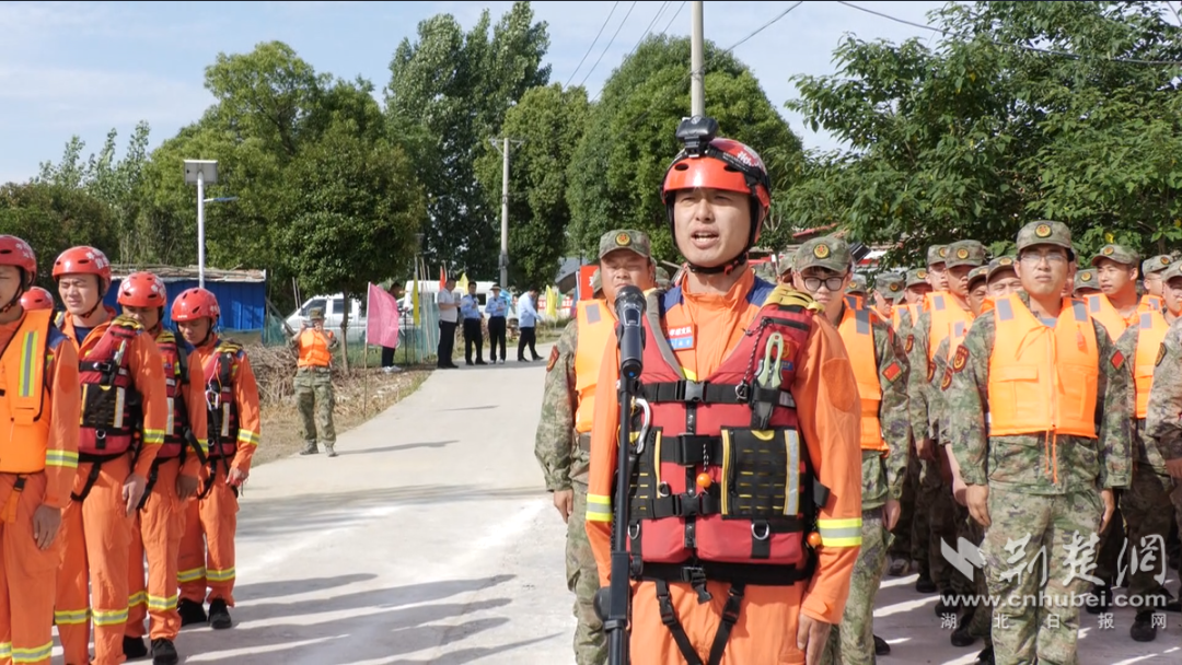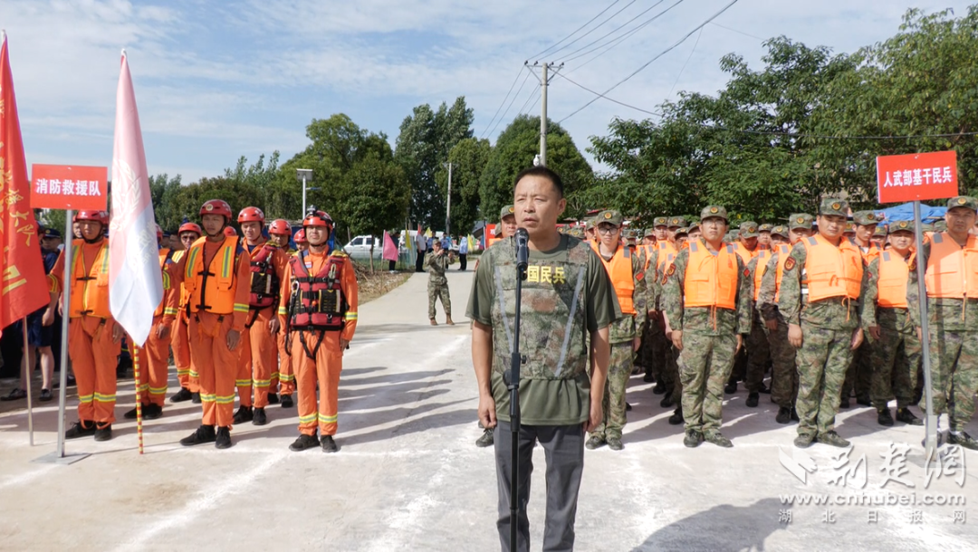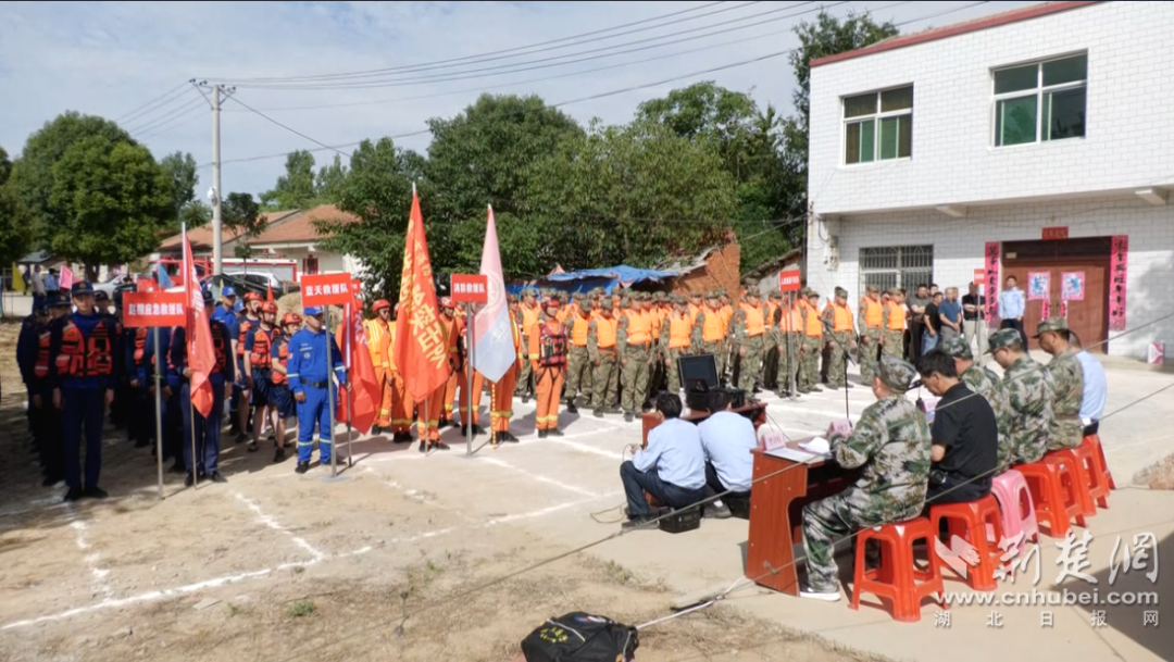 “報(bào)告指揮長(zhǎng)!防汛應(yīng)急救援隊(duì)伍集結(jié)完畢,請(qǐng)指示!”“開(kāi)始演練!”