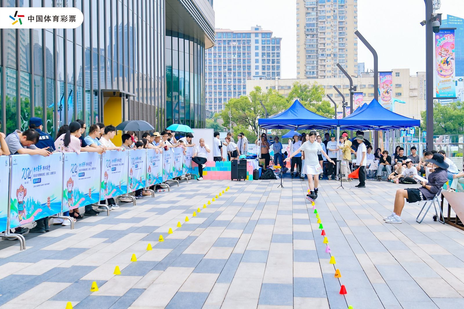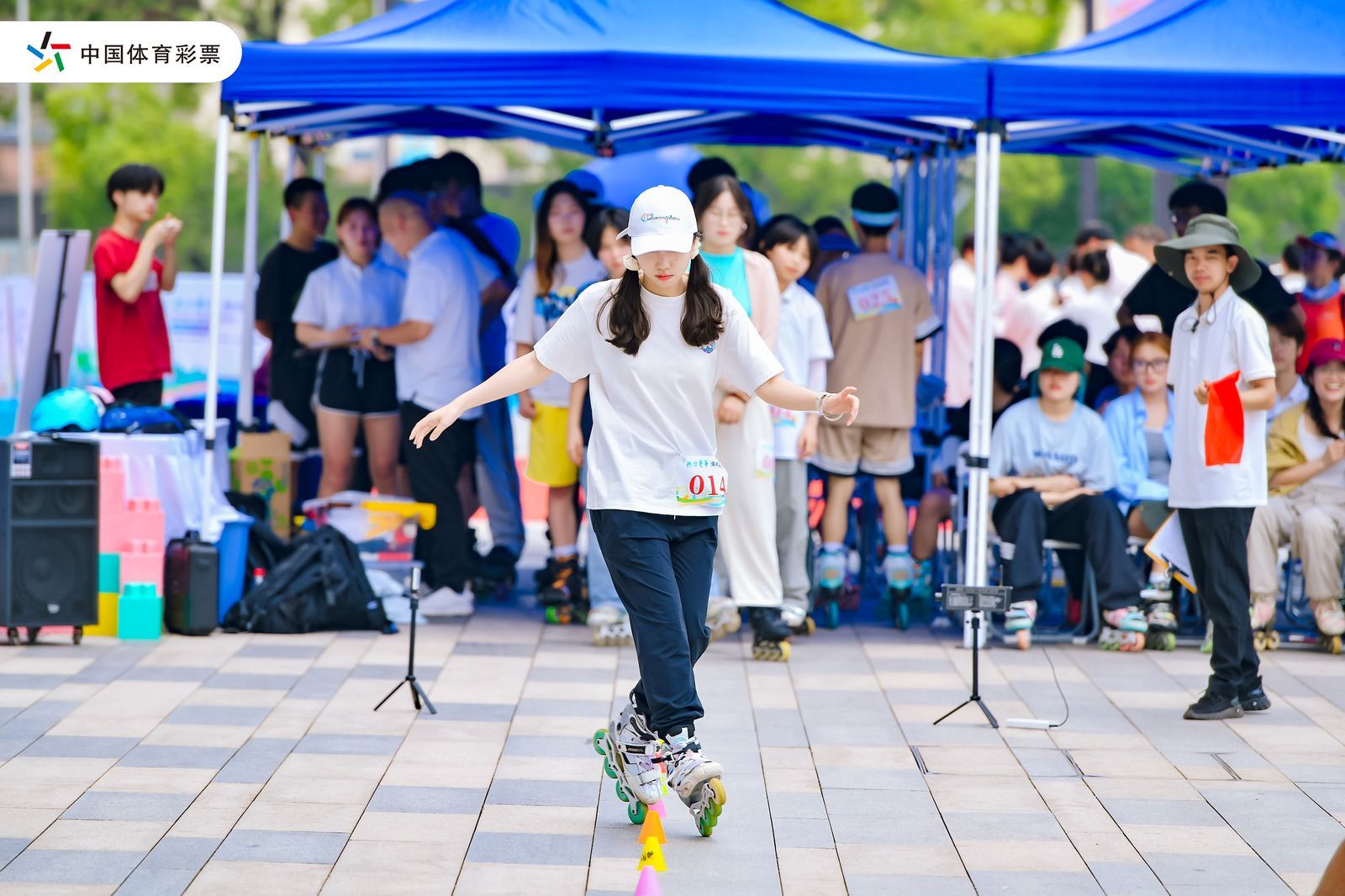在主舞臺旁的輪滑體驗區(qū),隨著2023年19屆亞洲輪滑錦標(biāo)賽冠軍、2023年世界輪滑錦標(biāo)賽第4名林珂欣,以及2022年全國輪滑錦標(biāo)賽輪滑障礙追逐賽冠軍王非奇的到來,更是將現(xiàn)場氣氛推向了高潮。輪滑運動員們展示了速度過樁、花樣過樁、平地花式等高難度動作,以及多人隊列的精湛配合,充分展現(xiàn)了輪滑運動的速度與激情,以及運動員們的卓越技藝。