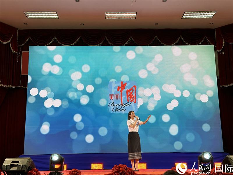 中老嘉賓在第二十三屆漢語(yǔ)橋世界大學(xué)生中文比賽老撾賽區(qū)決賽上致辭。人民網(wǎng)記者 孫廣勇攝