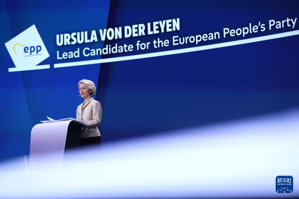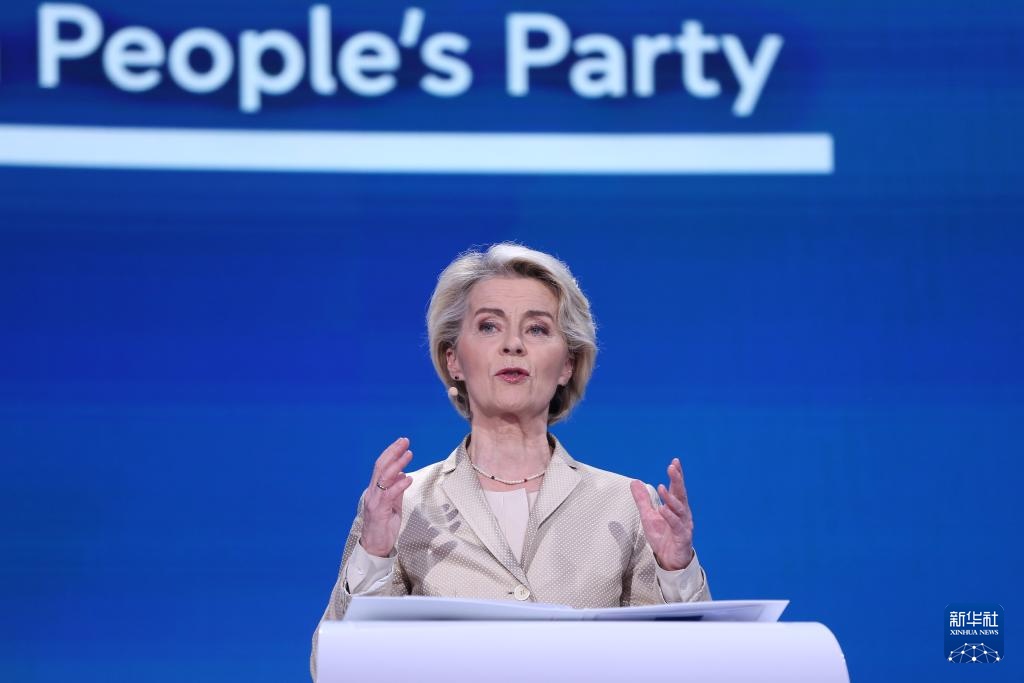6月9日,在比利時布魯塞爾,歐洲人民黨領(lǐng)銜候選人馮德萊恩在歐洲議會發(fā)表演講。新華社記者 趙丁喆 攝