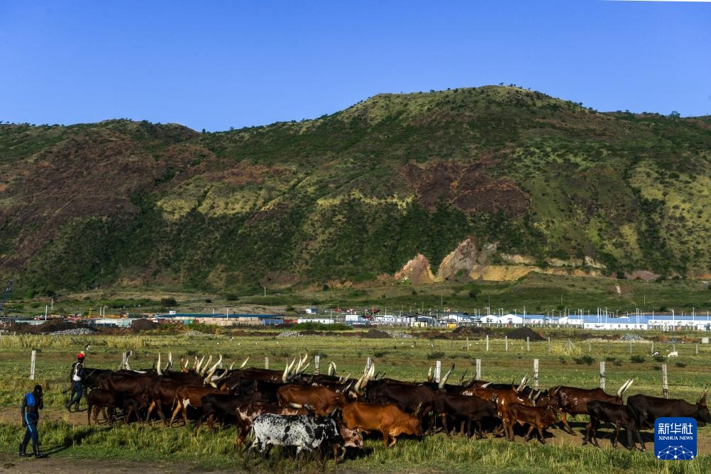 4月1日,牧民在烏干達(dá)西部邊境艾伯特湖畔的翠鳥油田項(xiàng)目所在地附近放牧。新華社記者 李亞輝 攝