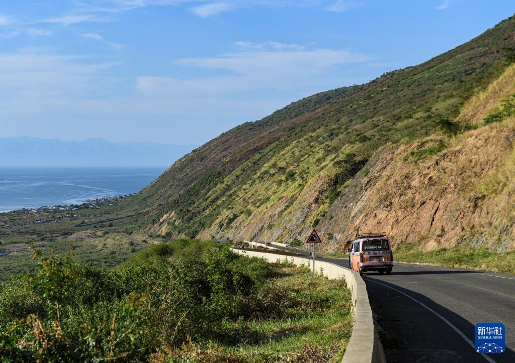 這是4月1日在烏干達(dá)西部邊境艾伯特湖畔的翠鳥油田項(xiàng)目所在地附近拍攝的跨崖公路。新華社記者 李亞輝 攝