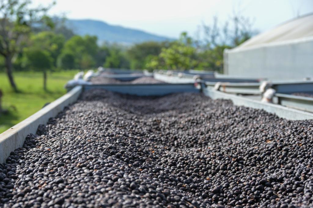 這是2月19日在位于巴拿馬奇里基省博克特地區(qū)的彼德松家族莊園內(nèi)拍攝的正在晾曬的咖啡豆。新華社記者陳昊佺攝