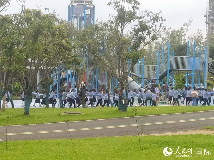 當(dāng)?shù)貎和诠珗@做游戲。人民網(wǎng)記者 黃培昭攝