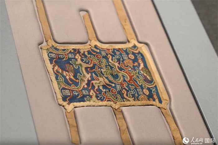 “五星出東方利中國”織錦護臂。人民網(wǎng)記者 張麗婭攝