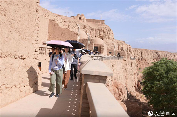 日本創(chuàng)價學會青年代表團參觀柏孜克里克千佛洞。人民網(wǎng)記者 張麗婭攝