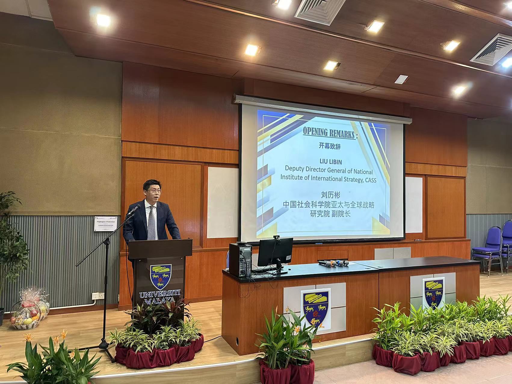 中國(guó)社會(huì)科學(xué)院亞太與全球戰(zhàn)略研究院副院長(zhǎng)劉歷彬致開幕辭。主辦方供圖